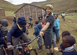 The small plane from Johannesburg arrives almost on time at Moshoeshoe Airport in Maseru, capital of Lesotho. Nino Schurter is sitting in it. His mountain bike is in his luggage. He is about to step onto Lesotho ground for the first time. The ambassador will accompany the mobile clinic - a SolidarMed project - to the mountains of Mokhotlong.