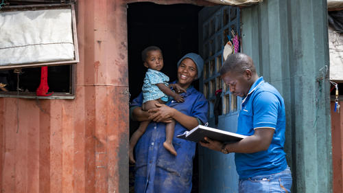 Sozialarbeiter Thando beim Hausbesuch der HIV/Aids-betroffenen Familien in den Siedlungen von East London, Südafrika.