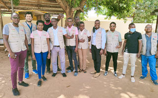 Seit Januar 2021 arbeitet Riccardo Lazzaro (2. von links) als Projektleiter in Mosambik. Das Bild stammt vom November 2021 und zeigt ihn mit dem Rest des Teams des Projekts «Farben retten Kinderleben». zvg