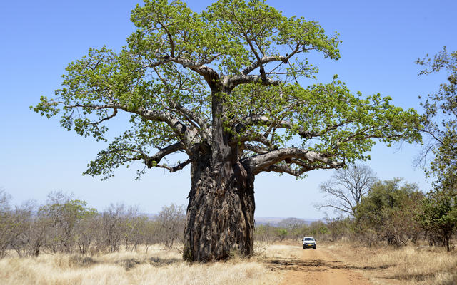 Trockene Savannenlandschaften sind typisch für Simbabwe. Nur zur Regenzeit kann das ansonsten trockene Gras in der Savanne wachsen.